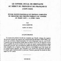 Le Conseil ducal de Bretagne au début du principat de François II (1459-1463). Étude institutionnelle et édition complète du registre des procès verbaux du Conseil (31 mars 1459-6 avril 1463)