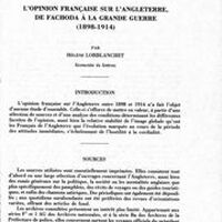 L’opinion française sur l’Angleterre, de Fachoda à la Grande Guerre (1898-1914)
