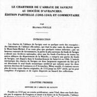 Le chartrier de l’abbaye de Savigny au diocèse d’Avranches. Édition partielle (1202-1243) et commentaire