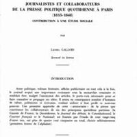Journalistes et collaborateurs de la presse politique quotidienne à Paris (1815-1848) : contribution à une étude sociale