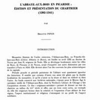 L’Abbaye-aux-Bois en Picardie : édition et présentation du chartrier (1202-1341)