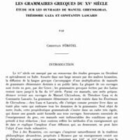 Les grammaires grecques du XVe siècle : étude sur les ouvrages de Manuel Chrysoloras, Théodore Gaza et Constantin Lascaris