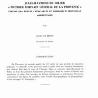 Jules-Raymond de Solier “premier écrivain général de la Provence”. Édition des Rerum Antiquarum et nobiliorum Provinciae commentarii