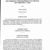 Les marques typographiques en France des origines à 1600