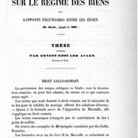 Essai sur le régime des biens ou rapports pécuniaires entre les époux en Gaule jusqu’en 985