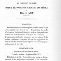 Essai sur l’histoire et l’organisation du greffe au Parlement de Paris depuis les origines jusqu’au XVIe siècle