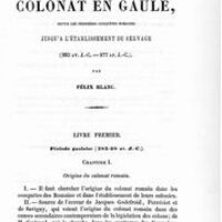 Essai historique sur le colonat en Gaule depuis les premières conquêtes romaines jusqu’à l’établissement du servage (283 av. J.-C.-877 ap.J.-C.)