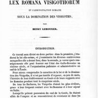 Études sur la Lex romana Visigothorum et l’administration romaine sous la domination des Visigoths