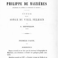Notice sur la vie et les ouvrages de Philippe de Maizières, chancelier de Chypre et Conseiller de Charles V. Étude sur le Songe du vieil pèlerin