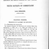 Aymeri de Narbonne, chanson de geste inédite du XIIIe siècle : texte critique et commentaire