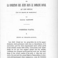 Essai sur la condition des juifs dans le domaine royal au XIIIe siècle (Île-de-Frnce et Normandie)
