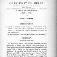 Essai biographique sur Charles Ier de Melun, seigneur de Nantouillet, baron des Landes, bailli de Sens, grand maître de France et lieutenant général du roi Louis XI, à Paris et dans l'Île-de-France (1420 ?-1468)