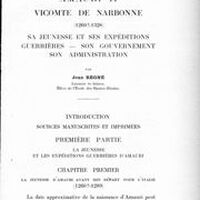 Amauri II, vicomte de Narbonne (1260?-1328) : sa jeunesse et ses expéditions guerrières, son gouvernement, son administration