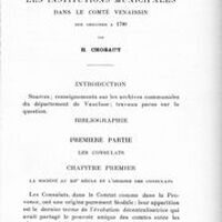 Les institutions municipales dans le Comté Venaissin des origines à 1790