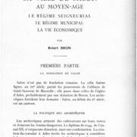 La ville de Salon au Moyen Âge. Le régime seigneurial. Le régime municipal. La vie économique