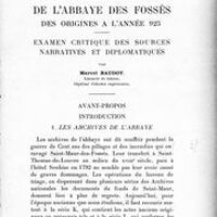 Histoire de l’abbaye des Fossés, des origines à l’année 925 : examen critique des sources narratives et diplomatiques