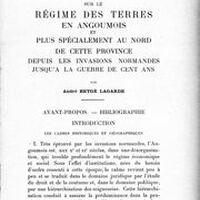 Essai sur le régime des terres en Angoumois et plus spécialement au nord de cette province, depuis les invasions normandes jusqu’à la guerre de Cent ans