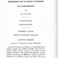 Henri de Mesmes et ses amis. Recherches sur un milieu littéraire de la Renaissance