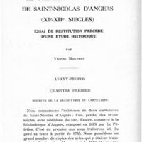 Le premier cartulaire de Saint-Nicolas d’Angers (XIe-XIIe siècles). Essai de restitution précédé d’une étude historique