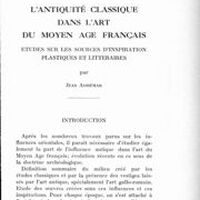 L’antiquité classique dans l’art du Moyen Âge français. Études sur les sources d’inspiration plastiques et littéraires