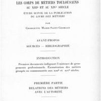 Les corps de métiers toulousains au XIIIe et au XIVe siècles. Étude suivie de la publication du Livre des métiers