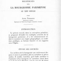 Recherches sur la bourgeoisie parisienne au XIIIe siècle