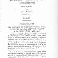 Les registres du Trésor royal pour l’année 1669. Étude et édition.